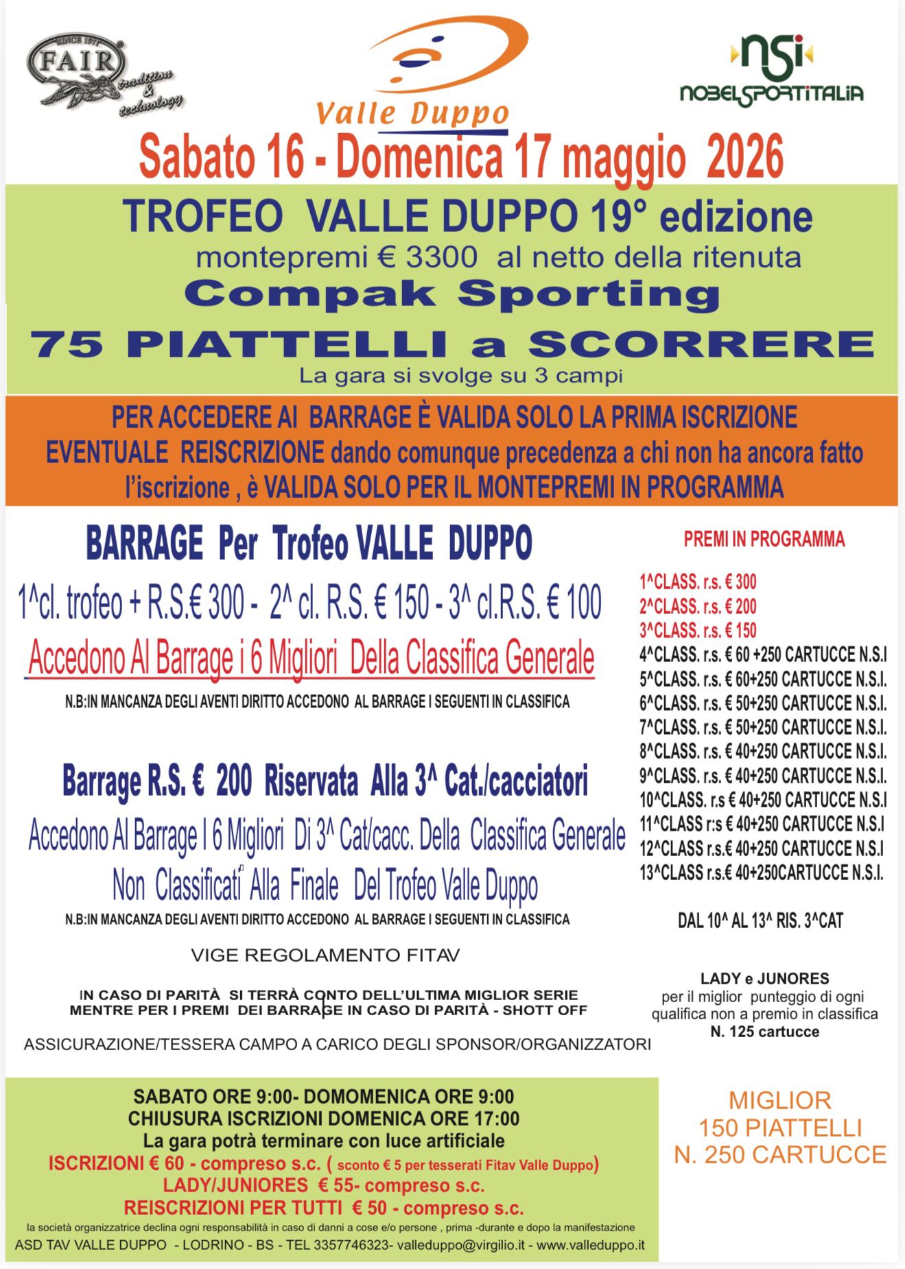 • TROFEO VALLE DUPPO 19° EDIZIONE 16-17 maggio 2026